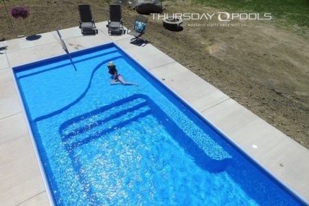 Take the ultimate recreation rectangle fiberglass pool, add luxurious lounging space, and you’ve got Lil Bob LX! We’ve extended the length of our popular Lil Bob inground design to include a tanning ledge and wading area with integrated bench seating. The added “shallow end” provides ample space to entertain your littlest ones, while the big kids get a workout in the game-ready, open swim area. With Lil Bob LX, everyone will have their favorite place in the pool.