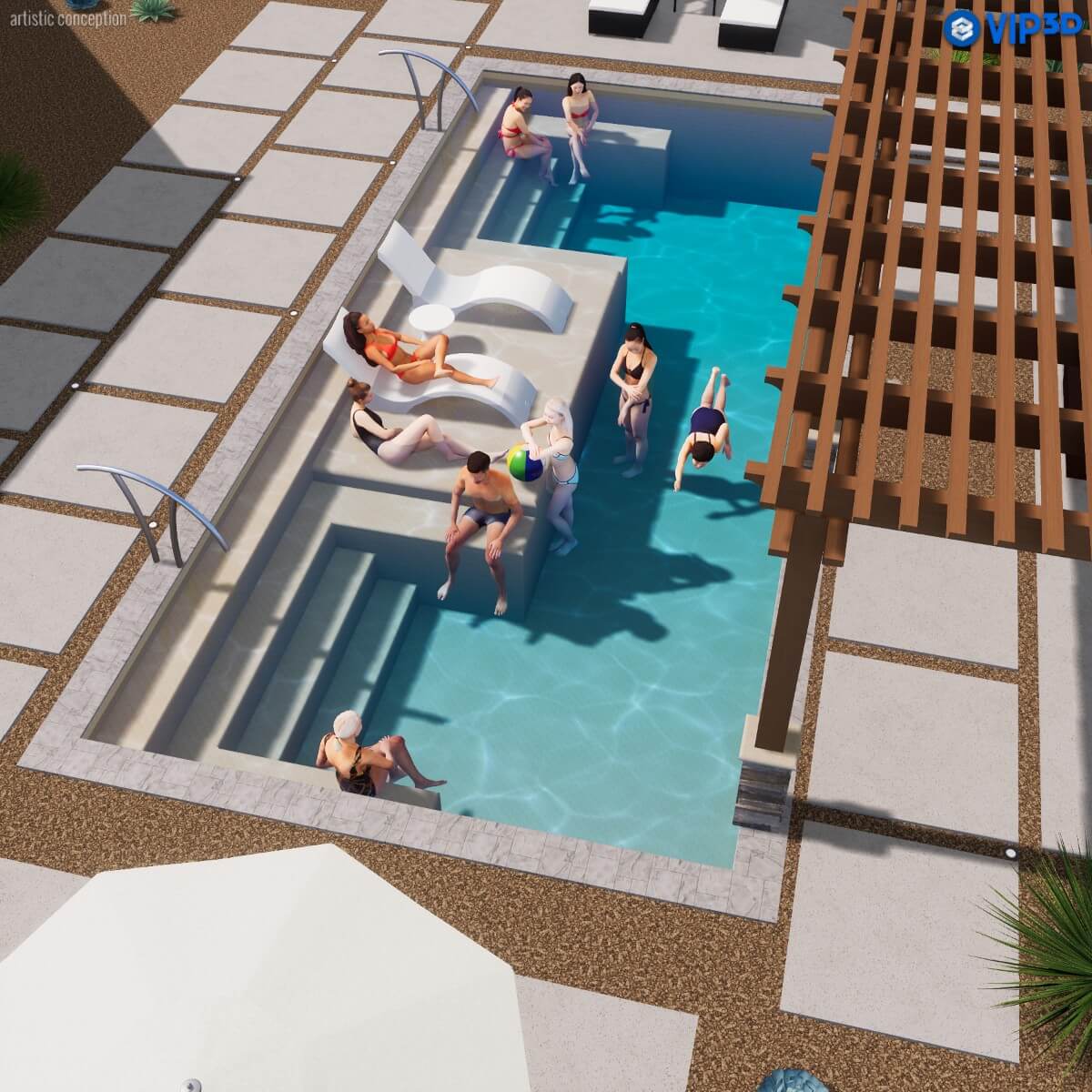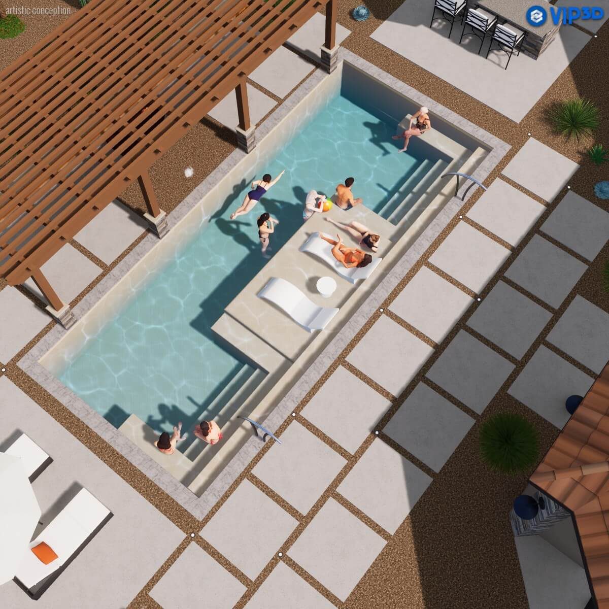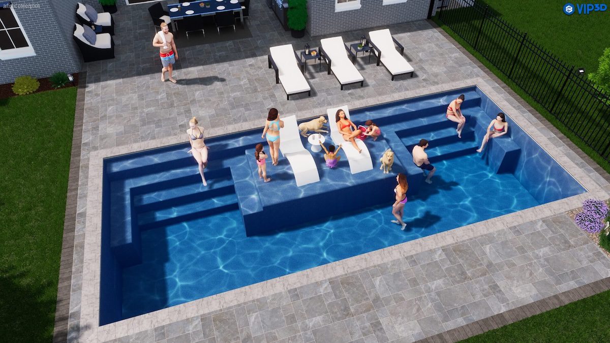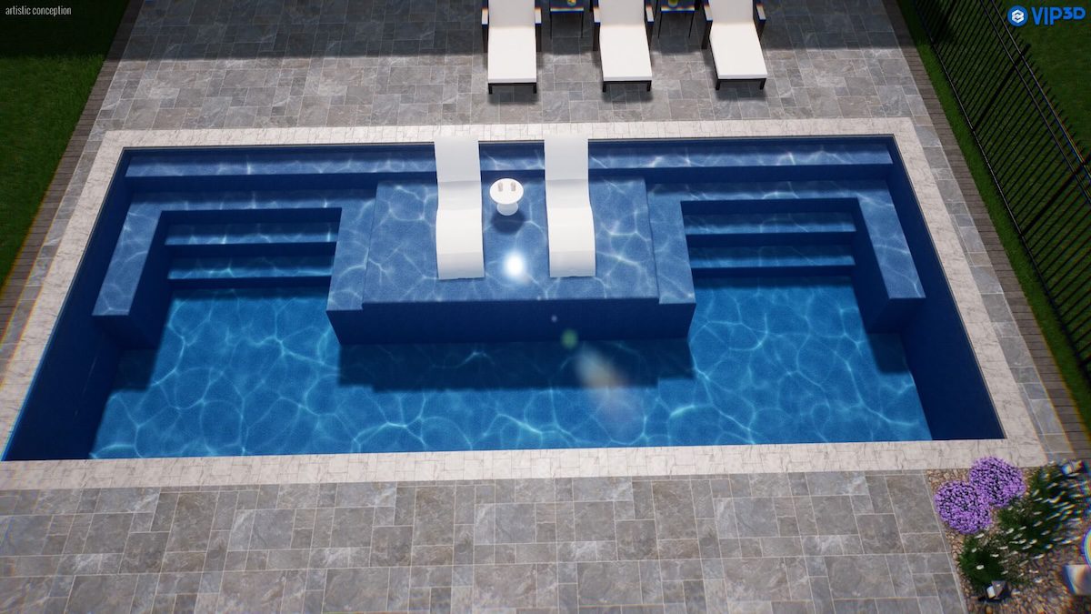 Make a statement that’s equal parts sophistication and social savvy. The Magnate delivers sleek design and purposeful luxury with two sets of non-slip entry steps, dual wraparound benches, a spacious tanning ledge, and a streamlined swim lane all in one striking shell. Whether hosting, lounging, or getting active, the Magnate sets the standard for a rectangular fiberglass pool.