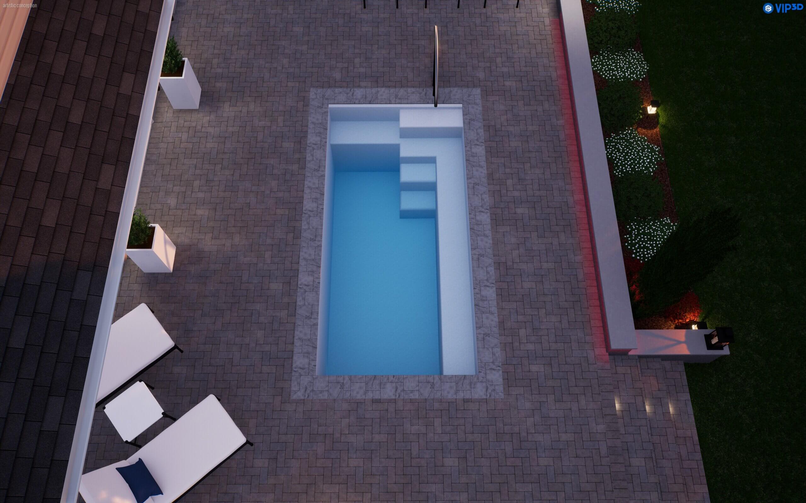 The Drift rectangle fiberglass plunge pool delivers modern simplicity in a compact inground pool designed for effortless relaxation. With a flat-bottom depth ideal for cooling off, floating, or gentle movement, it fits well in smaller backyards or courtyard spaces. Built-in entry steps and a full-length bench invite lounging and conversation. Whether as a private retreat or a social splash zone, The Drift plunge pool brings calm, comfort, and easy enjoyment to any outdoor space.