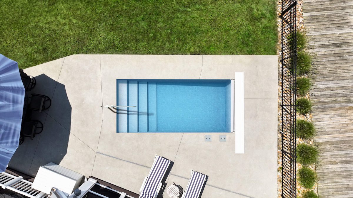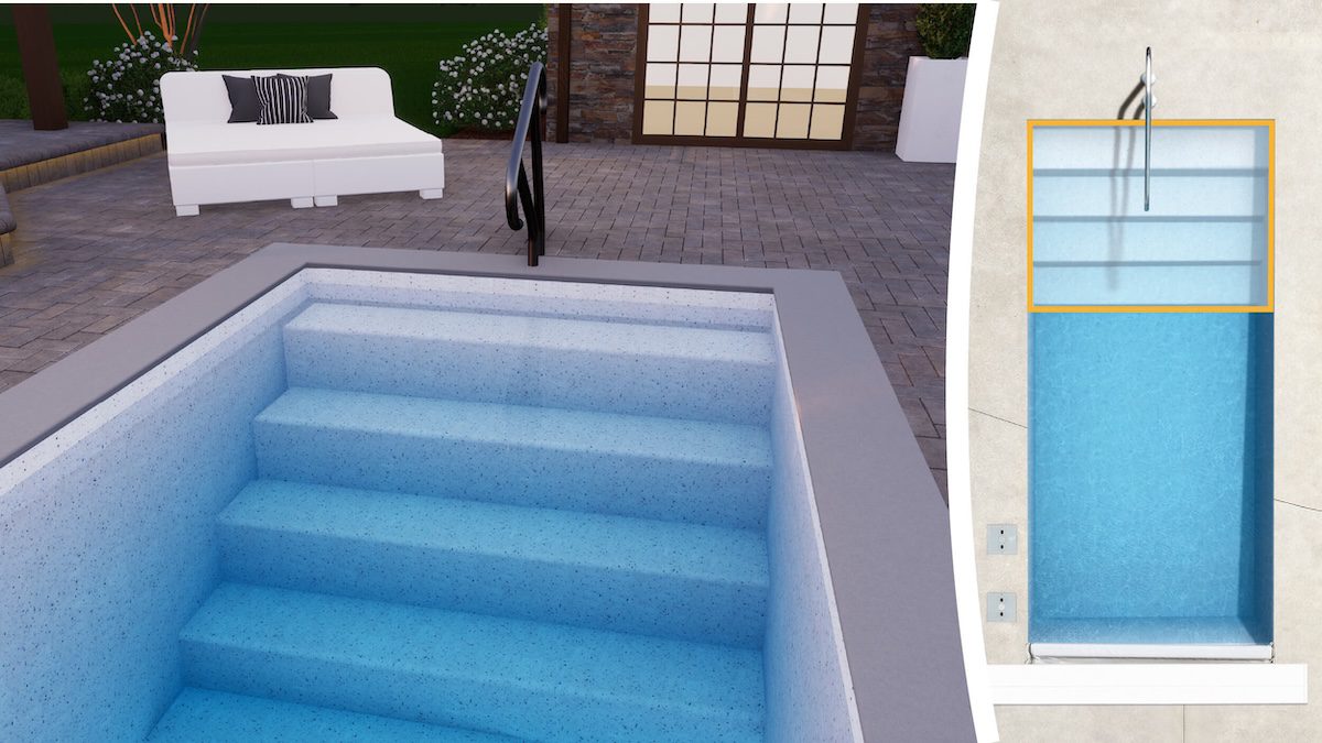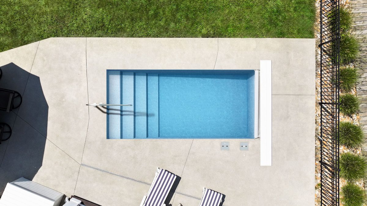 The Nest rectangle fiberglass pool brings modern simplicity to life in a compact inground pool designed for relaxation and versatility. Full-width entry steps and a 4’8″ flat-bottom depth create a comfortable space for lounging, stretching, or gentle movement in the water. Perfect for smaller yards or intimate outdoor settings, this small fiberglass pool delivers calm, comfort, and understated style. The Nest proves that thoughtful design can make a big impact in any space.