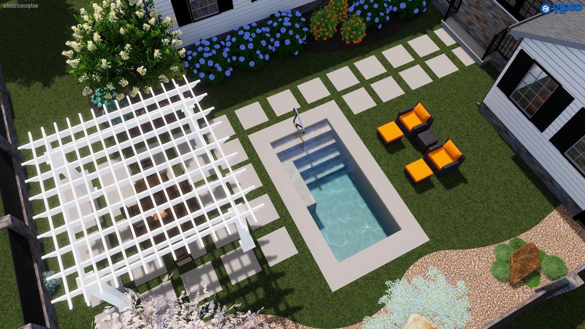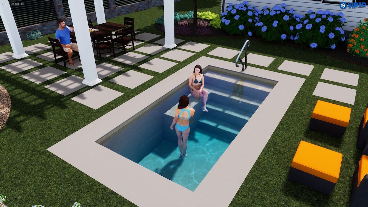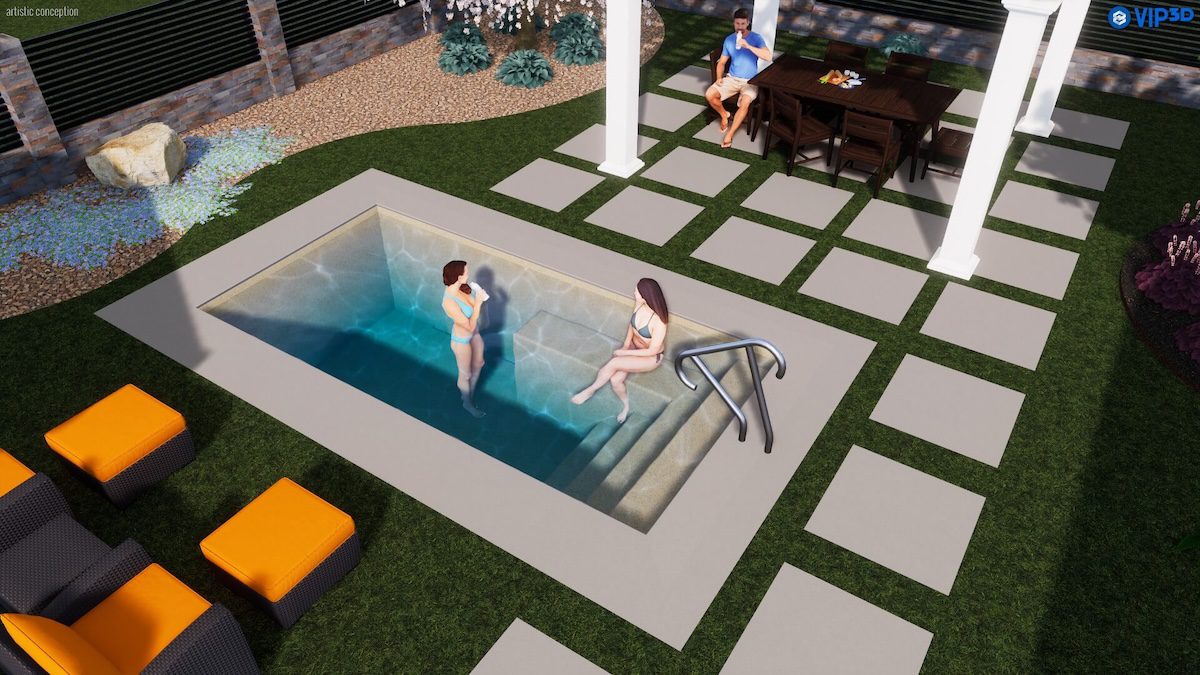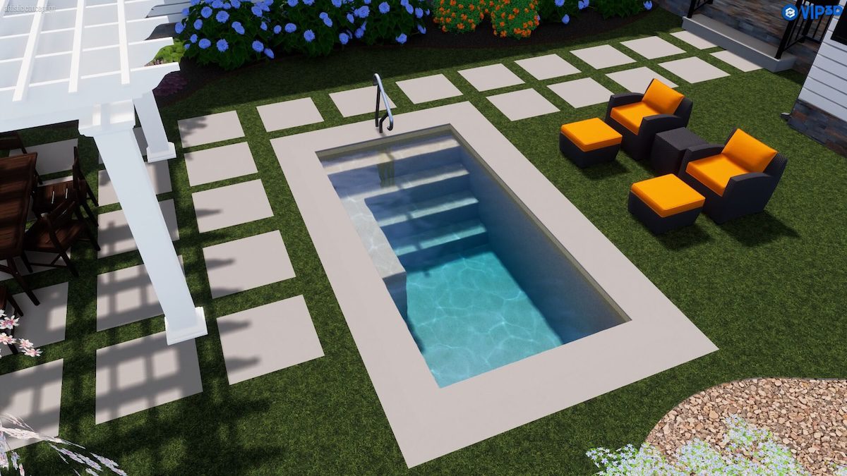 The Nook fiberglass plunge pool delivers refined comfort in a clean, space-saving inground pool design. Built-in entry steps and an integrated bench create a welcoming place to sit, soak, and unwind, while the flat-bottom depth supports lounging, cooling off, or light water exercise. Ideal for tight spaces or minimalist backyards, The Nook offers all the benefits of a rectangle fiberglass pool in a compact footprint made for simple, serene enjoyment.